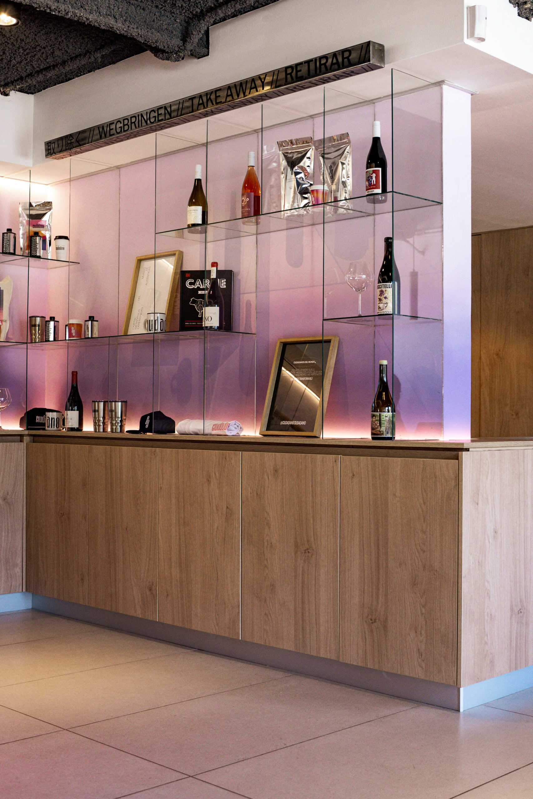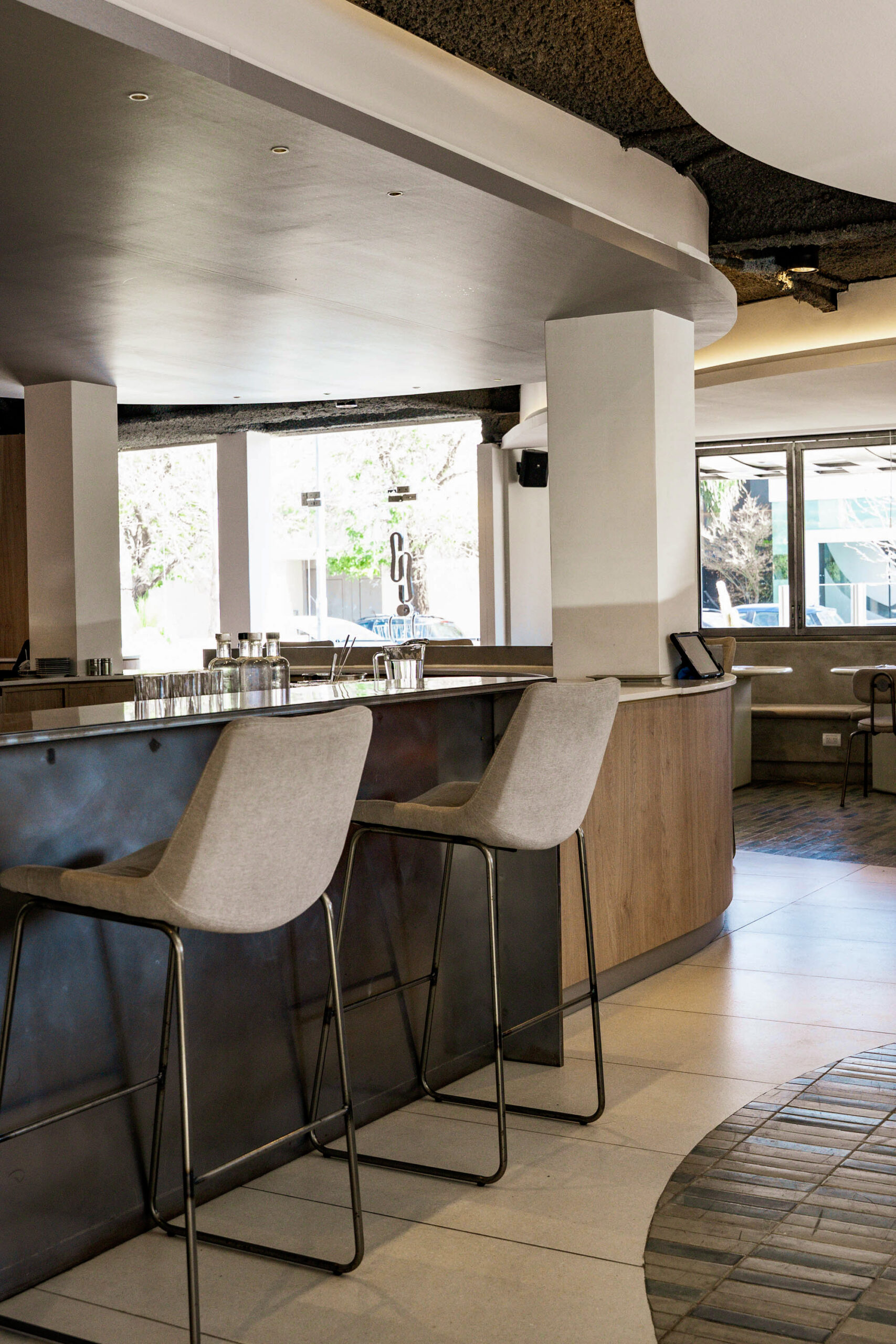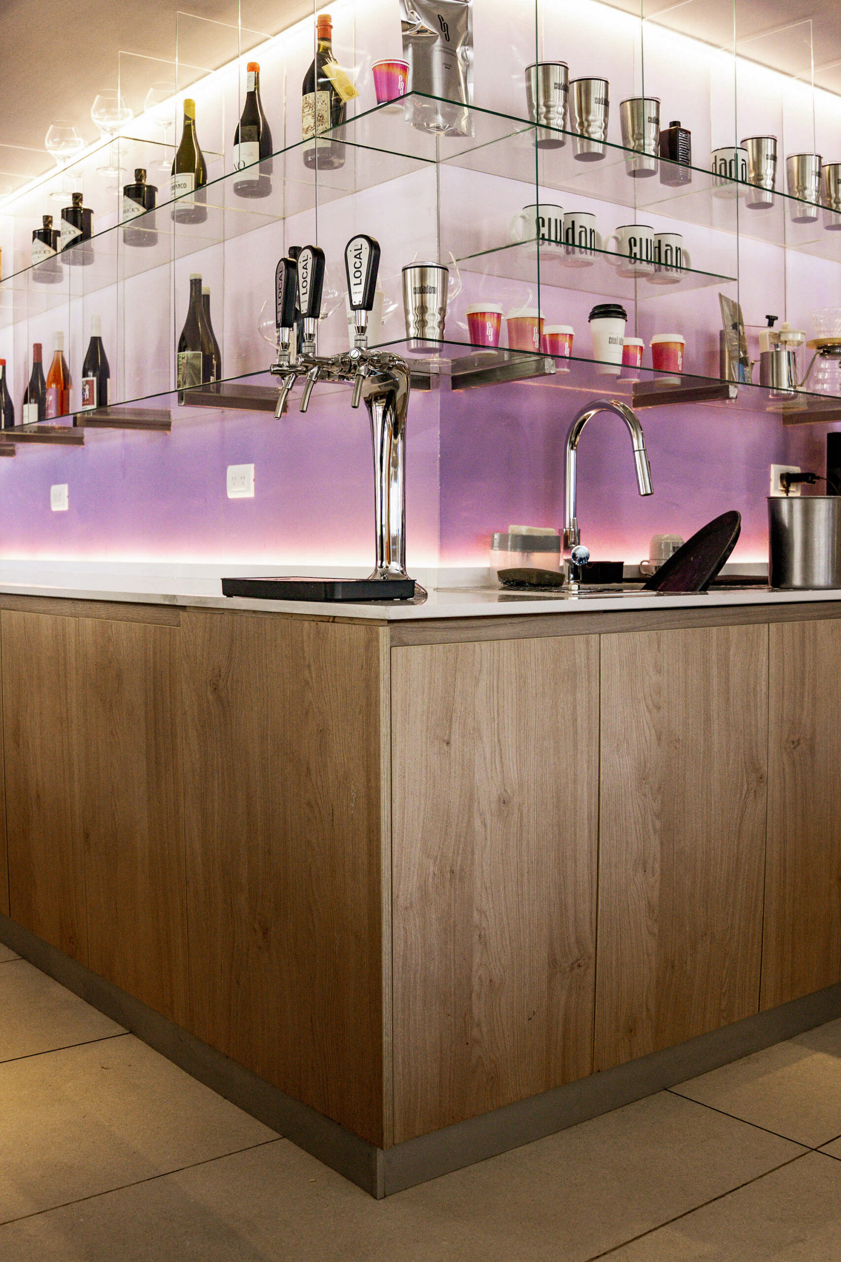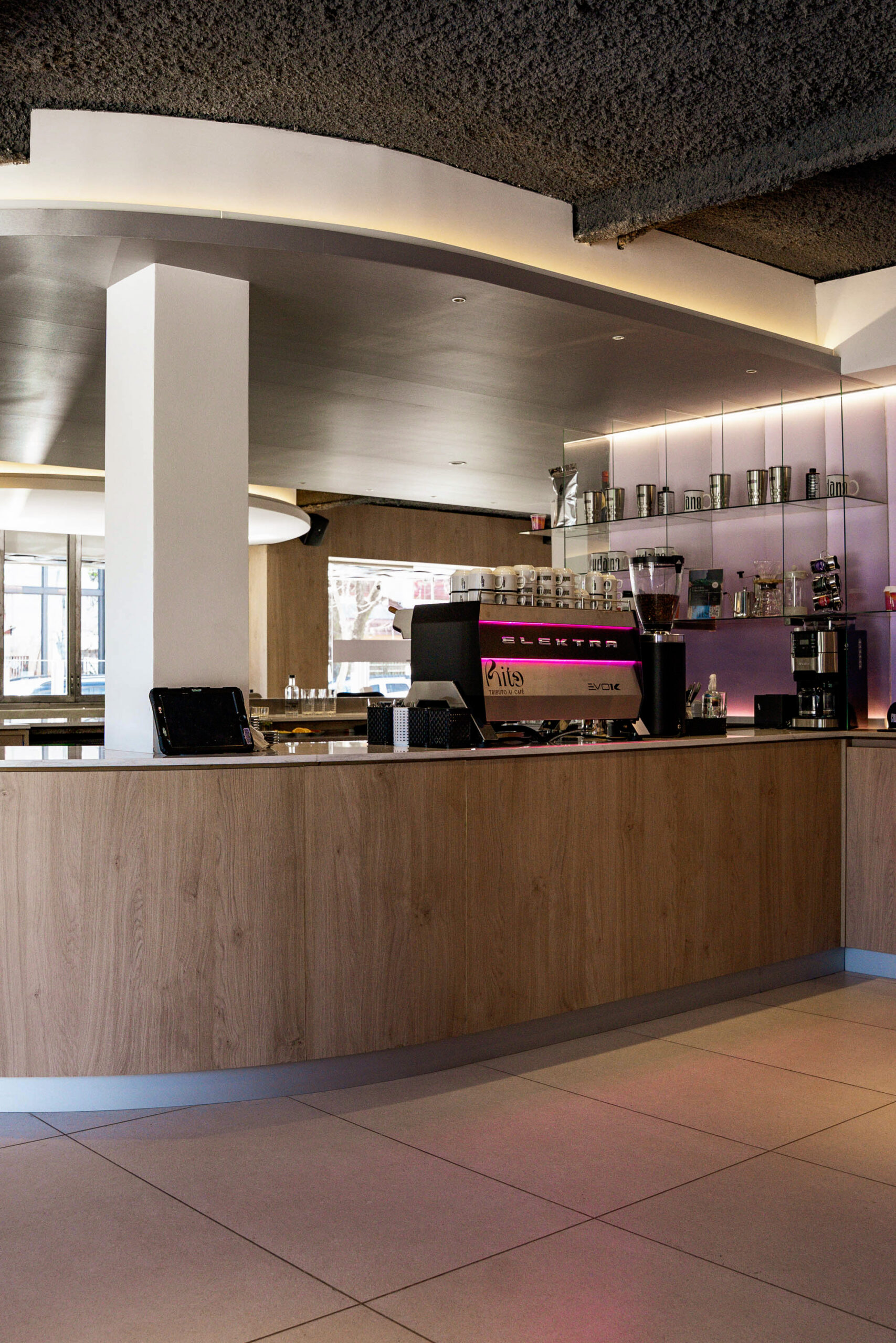 PROYECTO BAR CIUDADANO Diseño y dirección: @Mad_tecture@unmedio Ph: Santi Rocchietti Mobiliario y revestimientos curvos construidos en melamina Roble Kendall. Iluminación led.