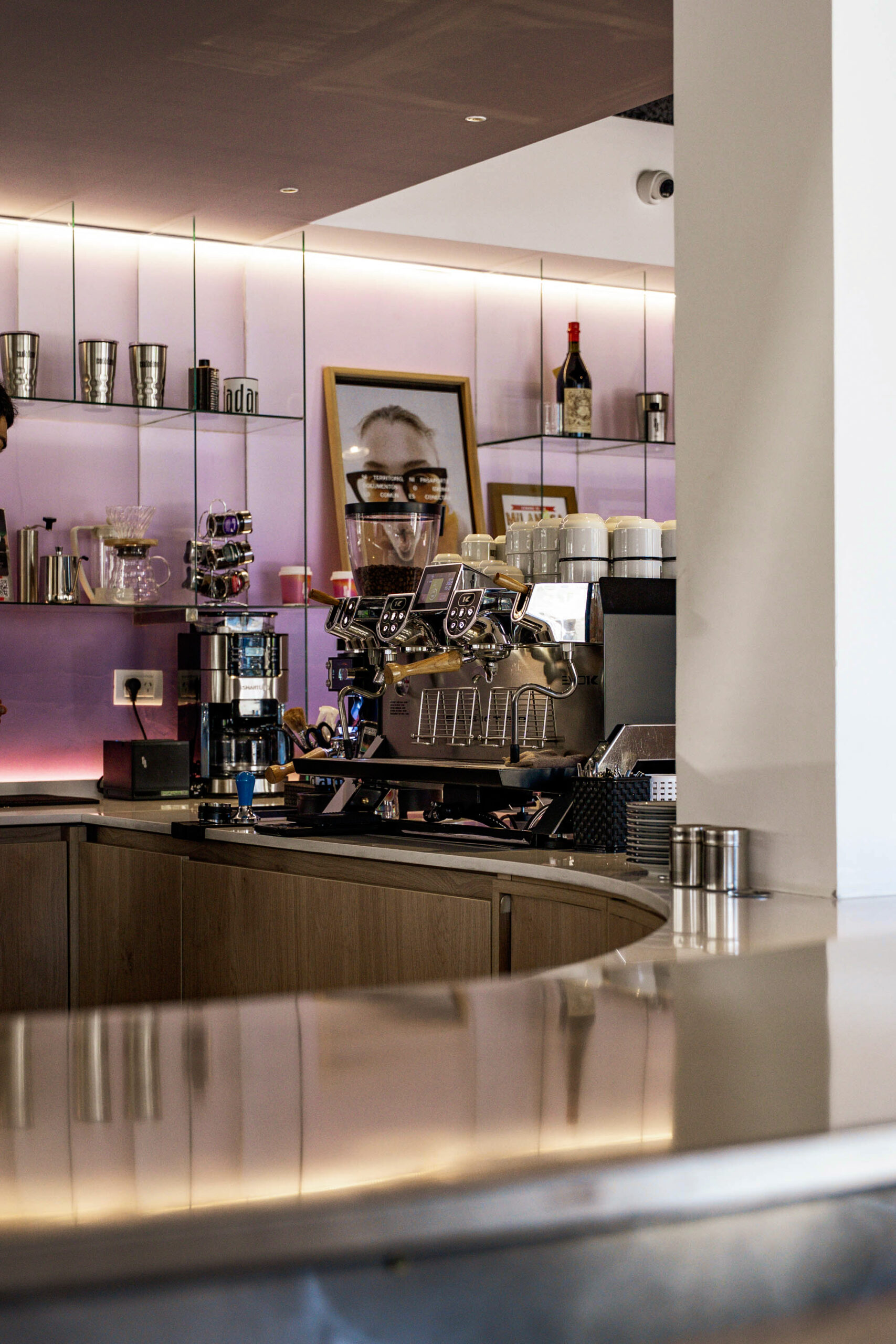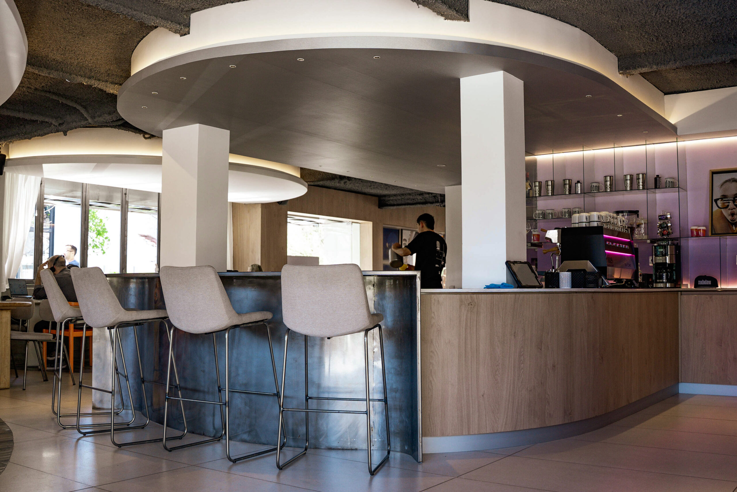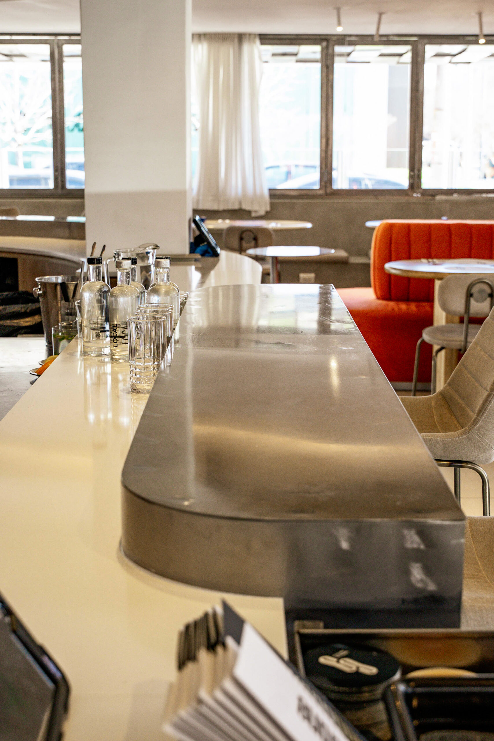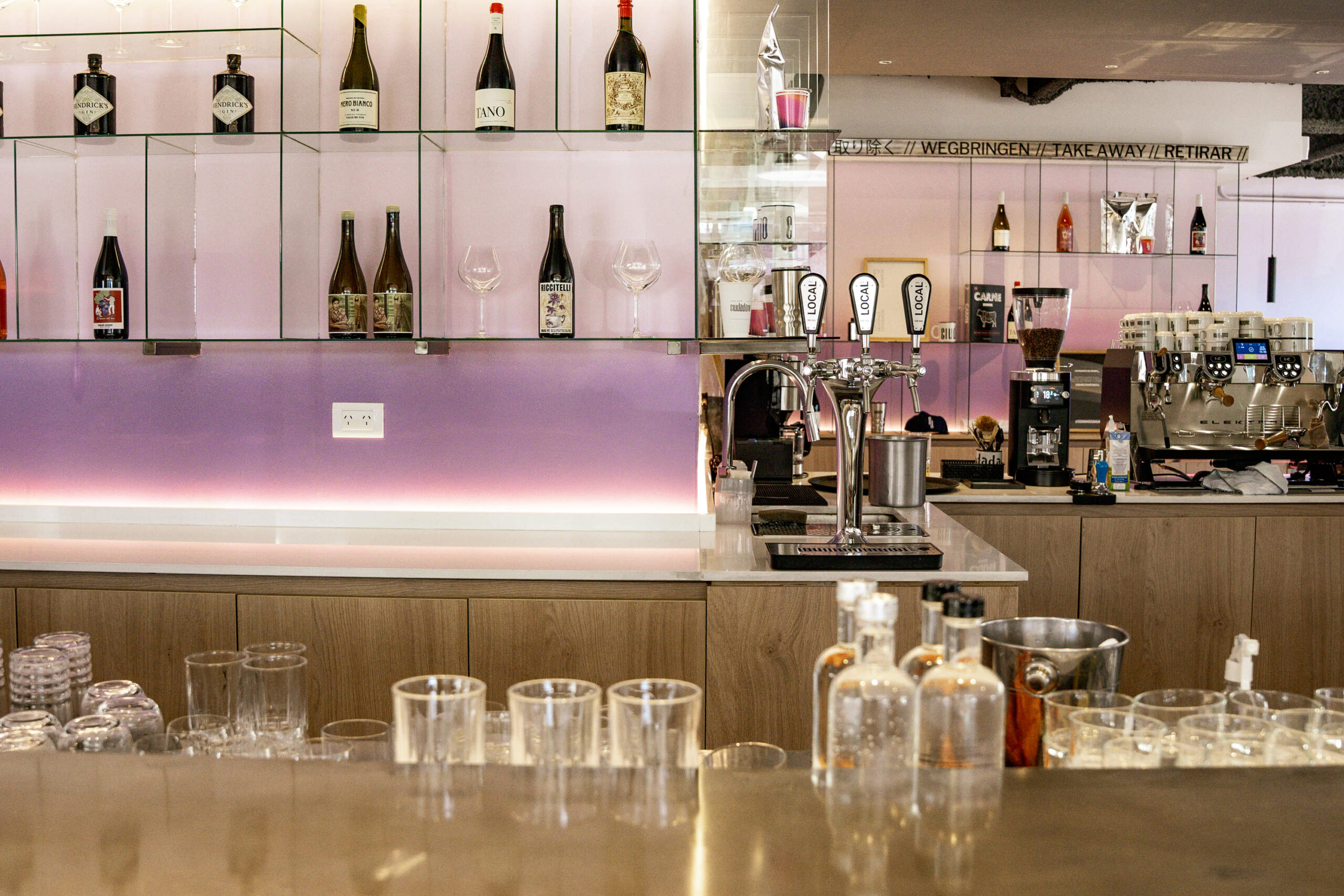 PROYECTO BAR CIUDADANO Diseño y dirección: @Mad_tecture@unmedio Ph: Santi Rocchietti Mobiliario y revestimientos curvos construidos en melamina Roble Kendall. Iluminación led.